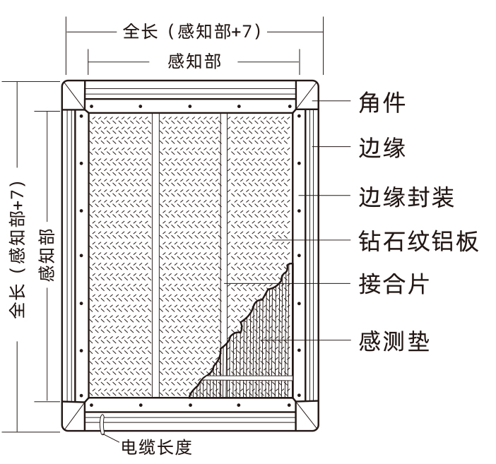 各邊有3.5″(88.9mm)的不感應區(qū)。
